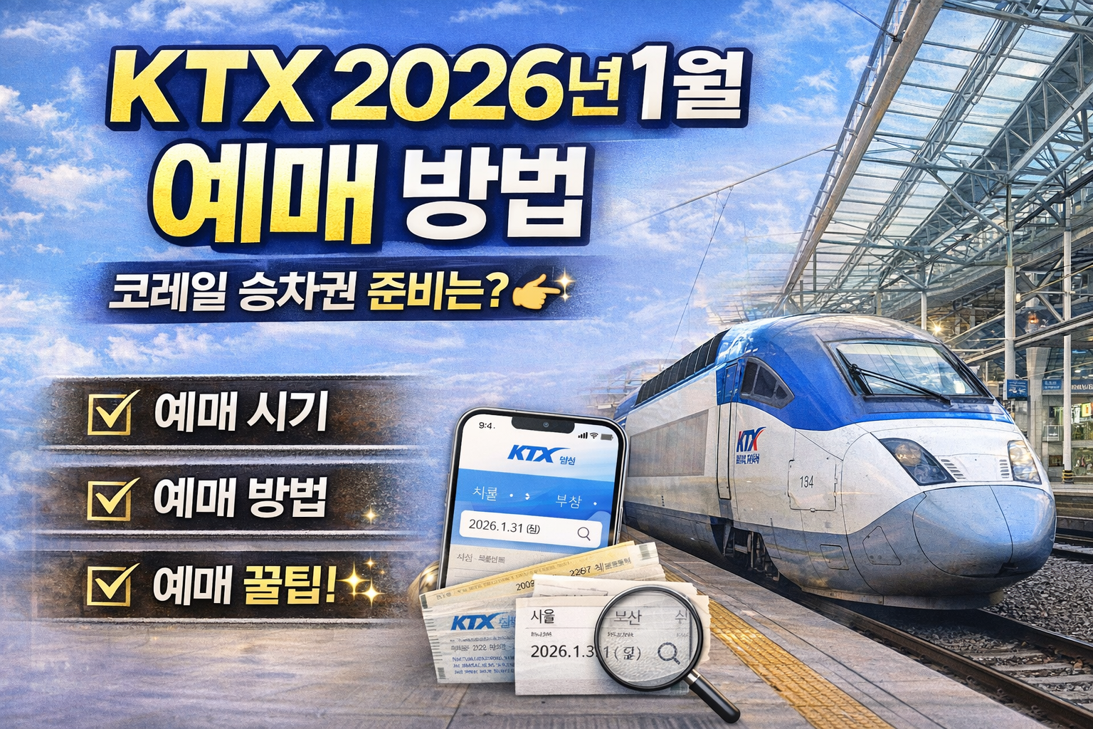 결론부터 말하면 KTX 2026년 1월 승차권은 코레일 예매 일정에 맞춰 순차적으로 오픈됩니다.