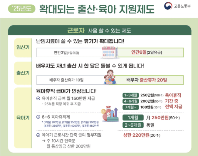- 예: 출산휴가 → 바로 육아휴직 → 유급/무급육아기 근로시간 단축